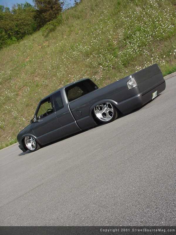 Next, he added a K&N air filter and then used a Power Programmer to tweak the S-10's computer for better performance. Keeping the power to the road comes from a Center Force dual friction clutch and an Auburn Gear Pro Posi, complete with 3:73 gearing. Allowing the S-10 to breath comes from a custom exhaust, including a custom y-pipe, which is strategically placed so Rick can drag his S-10. A Flowmaster muffler gives Rick's S-10 a more throaty, meaner sound. Rick's best time at the track to date has been a 15.2 at 91 MPH. Rick would like to give a special thanks to Adam Knape for all his hard work to get his S-10 completed. He would also like to thank all his Negative Camber friends who helped out, including Steven Melton and Chad McDonald.