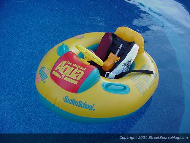 With a pool in sight, we decided to strap Jack in a life vest and put him out in the water to soak up some rays. After seeing some honey's come out of the house, Jack decided he wanted out. Here is the head honcho of Visions with Jack and I putting down a few cold ones. After a long day of drinking and getting his pimp on, Jack passed out. Here we captured a "Kodak" moment with Jack in the can bucket.
