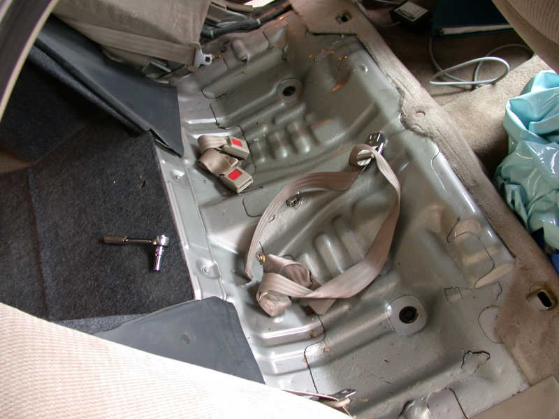 | To run the line into the trunk via the interior we needed to pull the back seat |