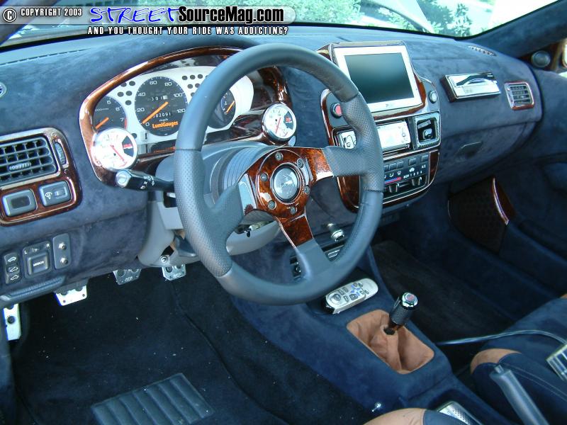 Leaving himself with nothing more then high expectations, Kenny's interior needs would be accomplished by Kreative Auto Interior of Rosemead, CA. While in their hands, the crew would first wrap the dash in black suede with painted trim to help match the exterior.