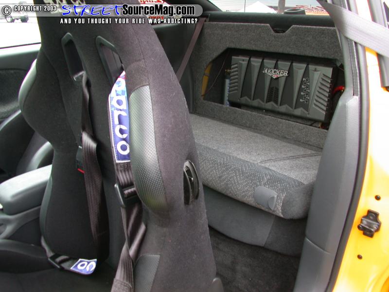 Since this would be Bob's daily driver, a kick ass system would be a necessity. Getting things going would be with an Alpine head unit with flip out monitor installed into the dash. Next a collaboration of Kicker components would be installed. A set of 6x9's, tree 8-inch Kicker comp VR8's, and two 6-inch focal speakers would be installed.