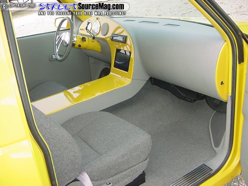 For seats Kyle grabbed the first pair of "junk-yard specials" he could find and had Greg's upholstery stitch them up in gray tweed. Along with the seats and dash Greg smoothed out the door panels and headliner and wrapped them in matching vinyl.