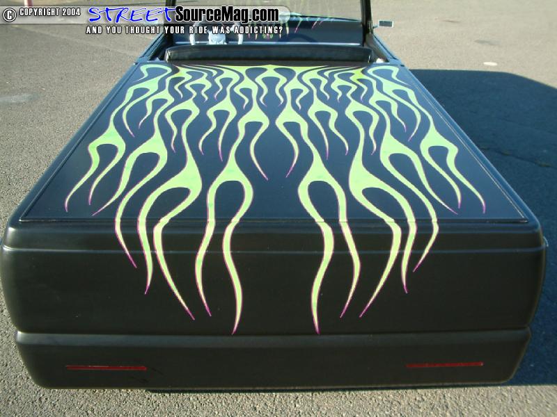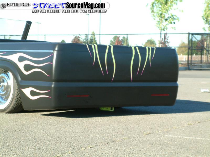 Behind the grille Chris would install a set of 72 GMC truck headlights replacing the stock Mazda headlights. Next Chris would install the stock Mazda bumper with filled plate holes and factory chrome trim. The door handles would then be shaved along with the gas filler door.