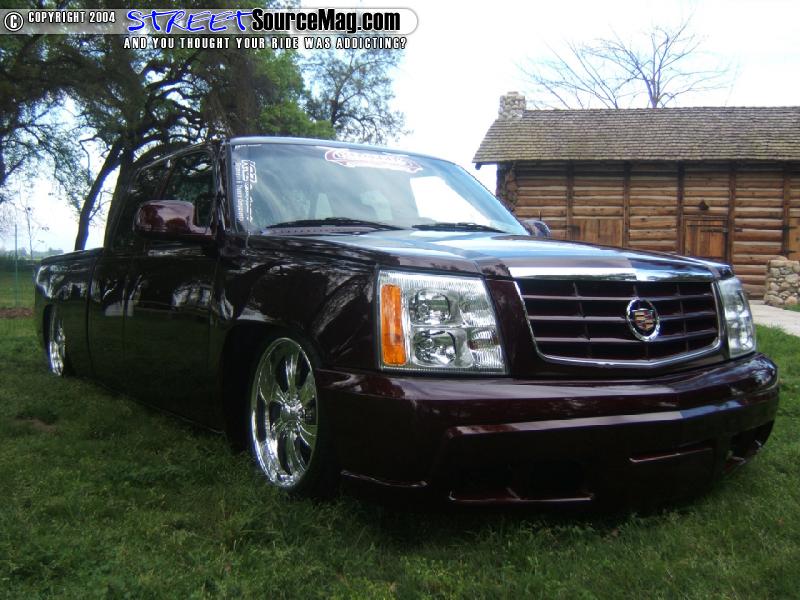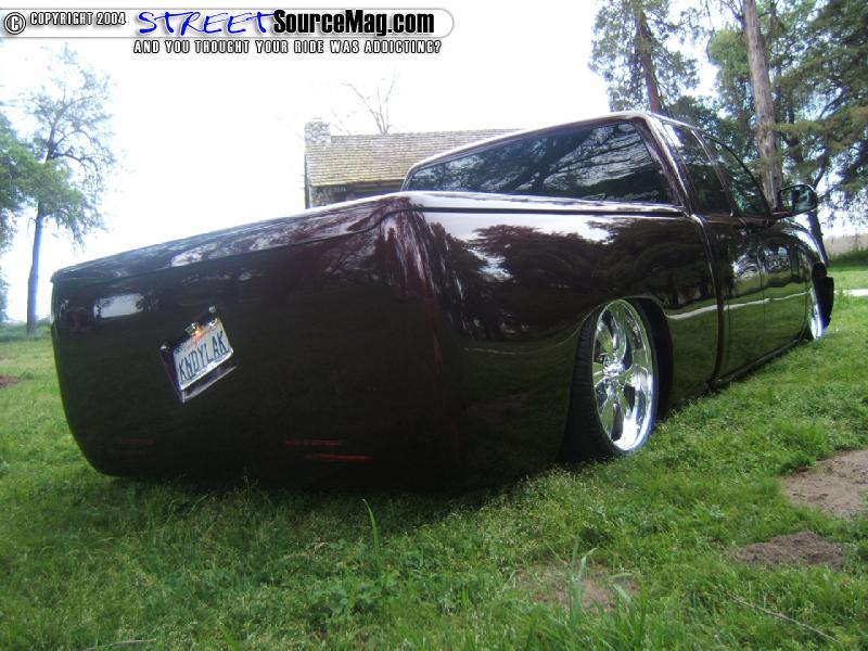 To replace the taillights he upgraded to a set of AVS L.E.D. taillights and molded the license plate box into the area where the tailgate-use to reside. He then converted the nose of the truck to that of a Caddilac Escalade and added a Gaylords Tonneau cover to give the truck it’s sleek look. Next the truck was fully sprayed in a kandy House of Kolor Brandywine.