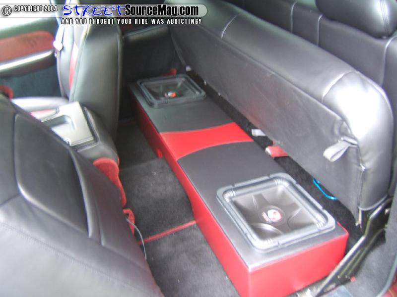 Two 12-inch Kicker Solo Baric subs are mounted underneath the rear bench along with all Arc Audio mids and highs and a 2400 watt Power Acoustic amp to run everything.