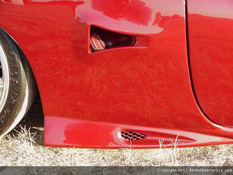 After everything was molded, Corey shaved the door handles, rain vents, moldings, emblems, trunk lock and the 3rd brake light. Now, you would think this would be enough, but if that is what you are thinking you better think again. The final step before paint was to shave the rear taillights and replace them with a set of Toyota Supra taillights. With the body complete, the last step was to apply the Candywine paint.