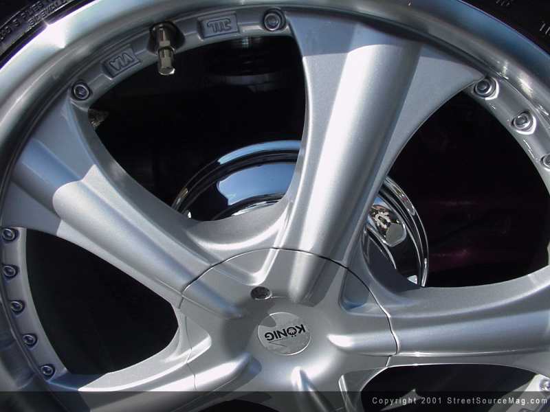To bring Jason’s Import to a respectable level, the decision was final that the use of Chassis Tech coil-overs would be used up front and in the rear. After adding the new suspension, the factory rear brake drums where sent off to be chromed and steel braided brake lines where installed. While torn apart, Jason figured that was a good time to pull apart other items throughout the undercarriage to be painted and powder coated. The new suspension would prove to shine through the new 18x7 Konig Caffine’s which were wrapped in 215/35/18 Nitto 450’s.