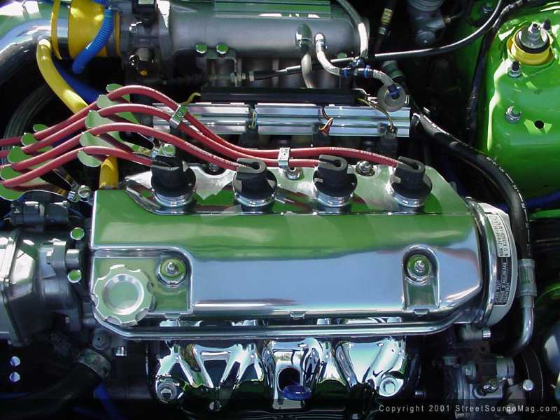 | Sporting 18x7 Konig Caffine’s wrapped in 215/35/18 Nitto 450’s. | To finish off any best of show vehilce, it was time to get the engine up to par with the rest of the car. To manage this, Jason had many parts chromed out and painted. Along with those items, he installed a RS Akimoto intake with 2 ½” cat back exhaust to allow the engine to breath.  To get appropriate fuel mixed in with the air, Jason purchased a Stillen fuel pressure riser along with Magnecore plug wires to provide the spark.