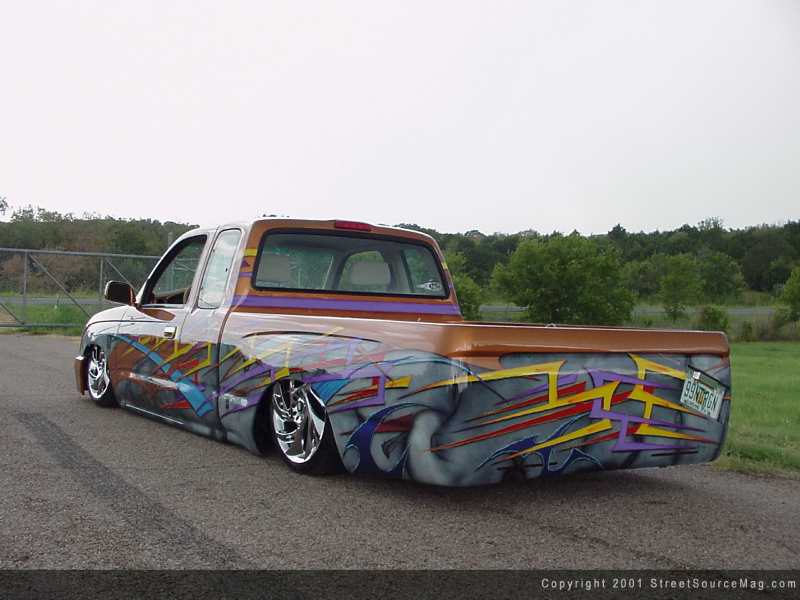To now roll the Show ready Tacoma into each and every event, Eric bolted up a set of 18x7 Enkei shwilcen’s wrapped in 215/35/18 inch Falkens. To roll the rims down the road, Eric left the engine pretty much alone except for the use of EL Prototype header and chrome intake purchased at Shogun performance. To add a little look to the engine Eric also had the valve cover polished. After a year and a half and nearly an additional 30 g’s, Eric finally finished this bad ass Taco on April of this year. I would like to apologize to everyone especially Eric with this feature. As most know The Texas Heat wave turned into the Hail Wave on Sunday of the event. Well mother nature decided to test my skills right when I was shooting Eric’s Taco. I was never able to get any engine shots and my lighting and location to shoot the interior during the storm wasn’t the best. But over all I’ve got to say that what Eric has here is truly one bad ass Tacoma.