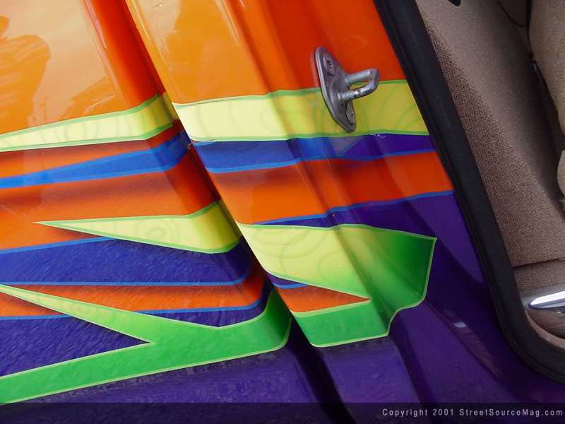 Spicing up the looks just a tad, Dustin then added some House of Color Violet Pearl and lime time green in graphic form.   Bringing together some finishing touches, Jenny Carr used green Lime Time paint for the pin striping needs.
