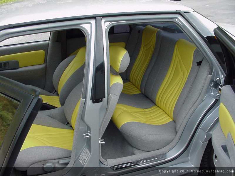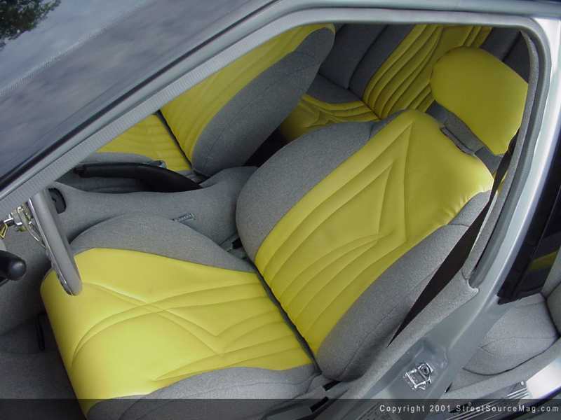 Keeping with the stock seats, Geoff turned to Dan from Custom Covers in Lebanon, TN for his professional assistance. While in Dan's hands, the seats would be wrapped in a two-tone gray tweed and yellow leather pattern. With all of the panels covered one way or another including the new floor material, there would be various billet items customized to fit, found within the interior. A chrome shifter along with a set of race pedals would be added for viewing pleasures.