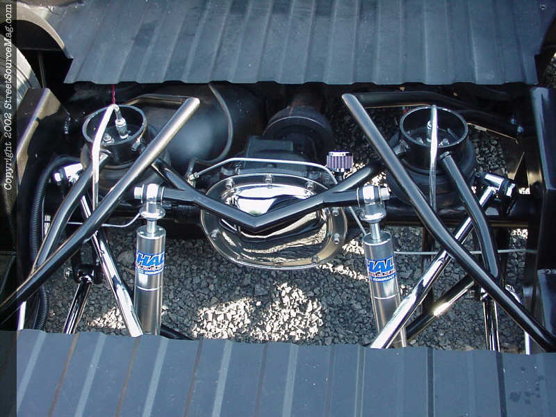 Starting with the rear end, the frame rails would be tubbed, boxed, notched and painted. Next a Pete and Jakes reverse triangulated 4-link would be installed to help the airbag set up bring the S-10 to the ground. Ensuring a good ride, Hal Billet QA1 shocks would be installed.