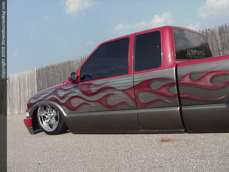 Danny's funeral was nothing less than amazing. The show of support for Cindy and Danny's family from his fellow scene supporters was outstanding. Members from every club imaginable were on hand to pay their respects. The procession line was lead by Danny's S10, driven by his nephew. Friends, family, fellow Acrophobia club members and countless other club members followed, showing support by driving their show vehicles. The site was enough to bring tears to everyone's eyes. At the graveside services, everyone stood around Danny's S10 and embraced each other in a show of support. You could of heard a pin drop, but you knew what was on everyone's mind. Even in the grief and sadness you had to know that Danny was looking down at his friends and loved ones, with that big smile that he always had, knowing everyone missed him. Goodbye Danny Rowe. We love you and miss you. Bobby Stewart***At the request of Cindy and Danny's friends, SSM will be reshooting Danny's S10 in it's entirety at Slamfest 2002 in Tampa, Florida in November. ***