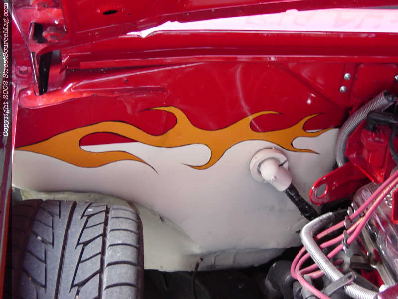 Under the hood, you will find a host of chromed and painted goodies that earns Les extra points on any judging sheet. Les painted the factory 2.8L V-6 block and took the time to chrome the alternator, intake manifold, pullies, air cleaner and valve covers.