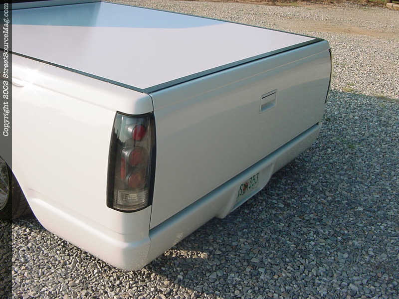 Starting with the exterior changes Allan dumped the stock hood for a fiberglass dual scoop, junked the front bumper for a after market paintable bumper with billet inserts and fog lights. To finish off the front end Allan added a billet grill to and clear corner lenses to his factory grill shell.  Moving down the rest of the exterior Allan added carbon fiber sport mirrors, a billet antennae, Euro carbon fiber taillights, low profile bed cover, and to finish it off a sir Michaels Roll pan to give the rear end a slick custom look.
