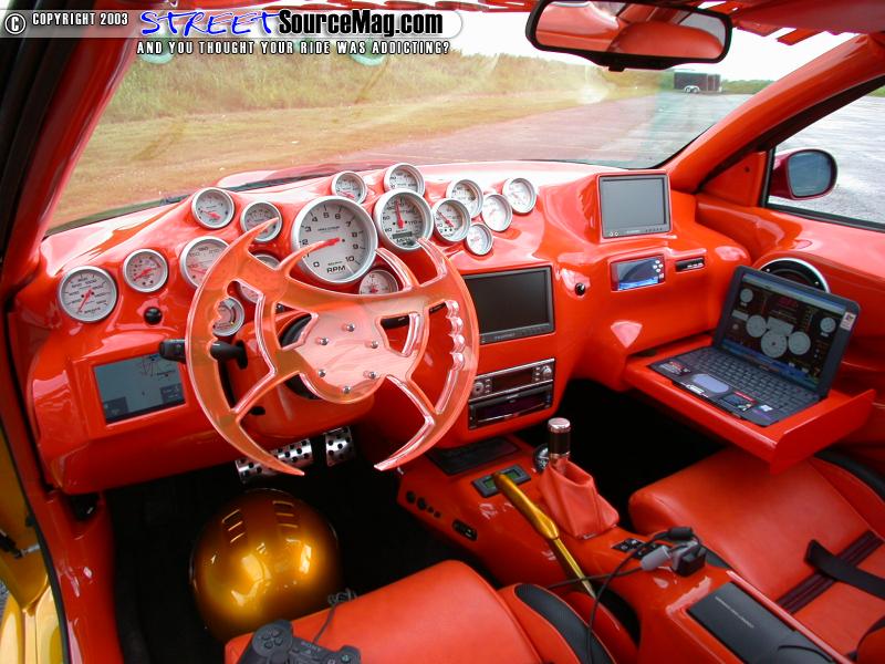 To tie things in the door panels would receive the same treatment along with other interior panels and a custom built headliner. Once the fiberglass work was complete, it would then be painted to match the exterior. To bring more bling to the interior, M&B would install a set of custom polished aluminum race pedals, custom shifter knob and boot.