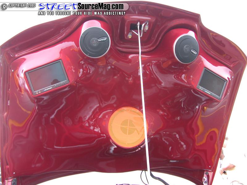 Keeping true to the custom feel, a Sony VAIO laptop computer with custom engine diagnostics and on the fly tuning would be wired up. The trunk lid would receive the next wave of countless hours of fiberglass treatment with two 7-inch Blaupunkt monitors molded in.
