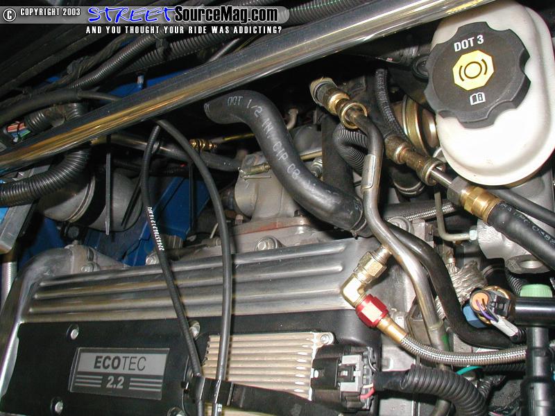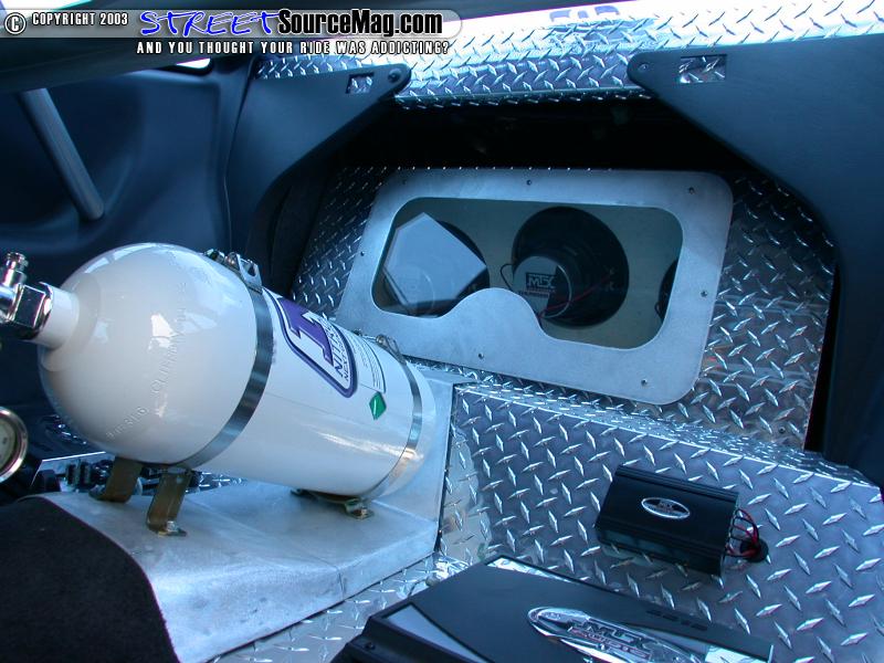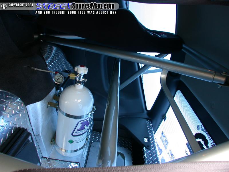 The front mount intercooler is a Hahn RaceCraft exclusive design with an integrated return chamber allowing for more efficient cooling of the charged air. Nitrous Express single port Nitrous System with a 100 hp shot of nitrous would then be applied to spool the turbo quicker getting rid of un-needed lag. The car also sports brakes from Stainless Steel Brake Company. An Optima battery was then installed by RBCM.