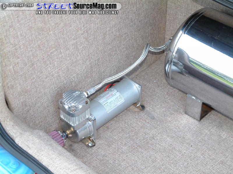 Josh would use Blitzluft air cylinders with (8) ½ inch Blitzluft valves, 10 switch box, chrome 9 gallon 8 port tank and a Viar 450 to bring the Accord to his desired ride height. The use of a polished sway bar helps keep things balanced around the turns.
