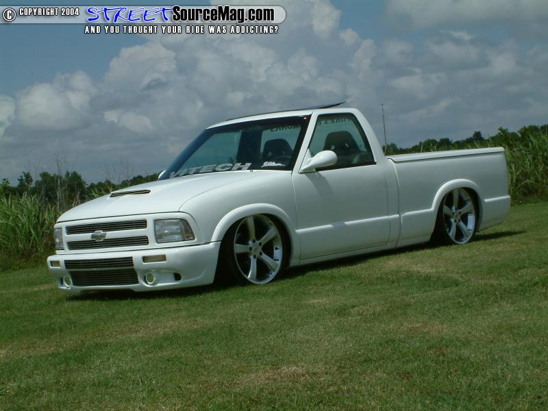 Continuing with the shaved items Alvin would be rid of the gas filler door, taillights, hood squirters, antenna and 3rd brake light. While the taillights are found replaced by a set of LED’s, the headlights would also be replaced by a set of ’97 Blazer headlights. To finish off the exterior modifications Alvin would have a Trader bed cover and wiper cowl cover installed along with a Power sunroof for those sunny Island days.