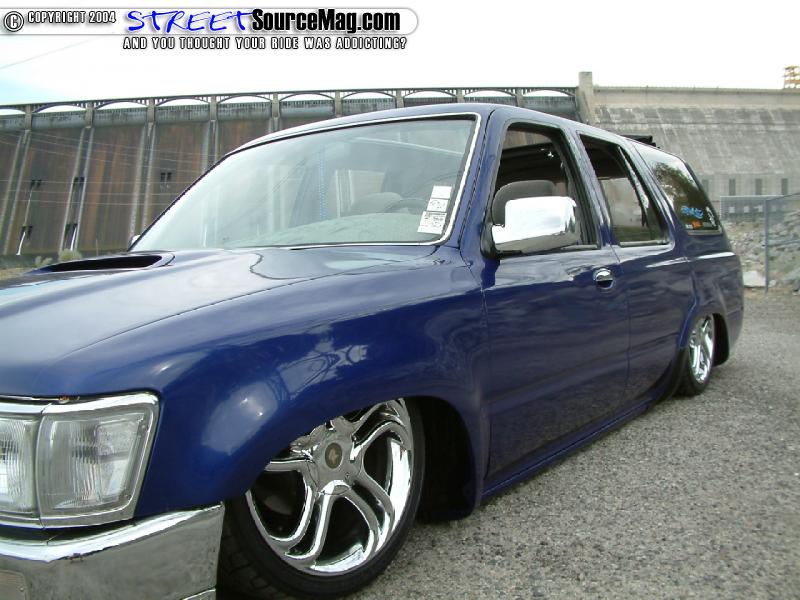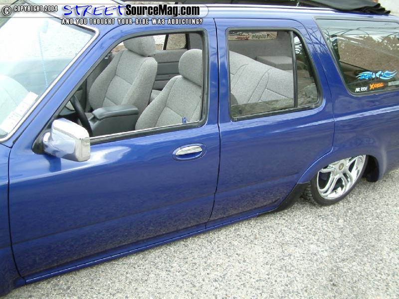 Keeping things different, the rear doors where shaved of the door handles while the front where replaced by a set of ’95 Altima door handles. Moving back the gas filler door would be shaved and moved behind the rear gate while the gate handle would receive the same shaved treatment. Rounding out the rear the taillights would be shaved and replaced by LED’s and a custom roll pan would be molded in.
