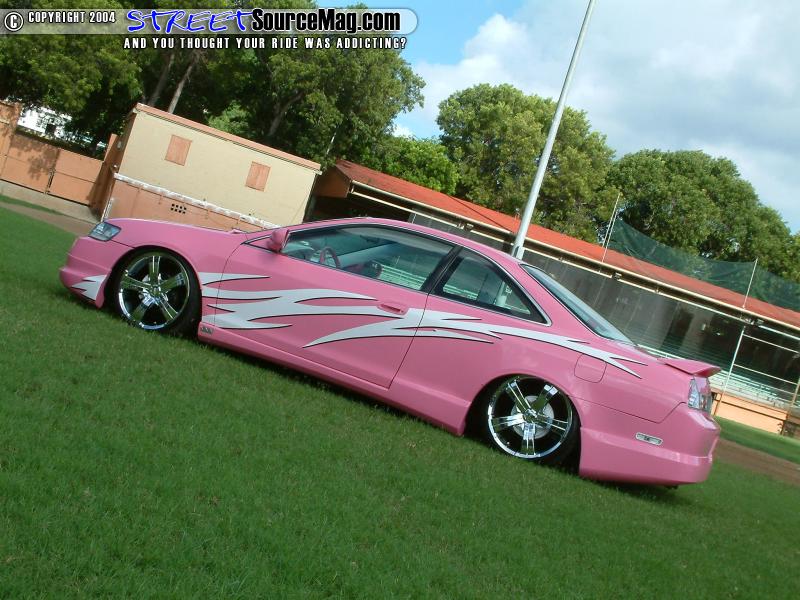 Moving to the inside of the Accord you’ll find an array of Louis Vuitton pink blossom material. The dash with some pieces wrapped and some painted would be the beginning of the ventures. Next the doors and headliner would be wrapped along with other interior panels.