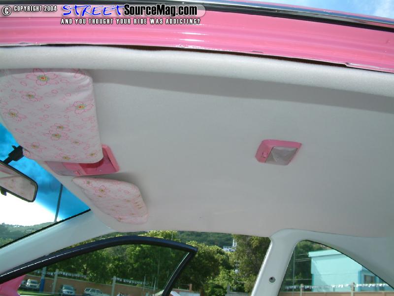 The seats would then be stitched to help tie things together. Making sure no item was left stock other items such as the steering wheel, rear view mirror and control panels where painted to help keep the custom flow.