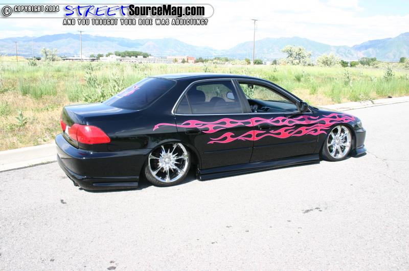 Under the hood sits a short ram intake, with a cone on the end of it. They also went the extra step and painted a few things pink including the valve cover, overflow, and Optima battery. If you look closer you can even see some wire loom. The loom is red though, not pink.
