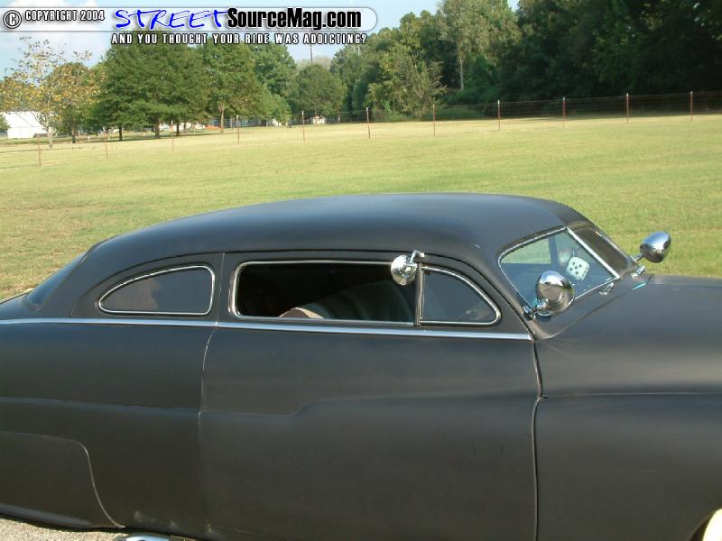 Getting the exterior mods-rolling Scooter would tear down the Merc and begin cutting the roof. With the pillars cut and the roof sectioned to the correct proportion he would end up with a 4-½ inch chop top. Next Scooter would cut into the side skirts extending them 2 inches.