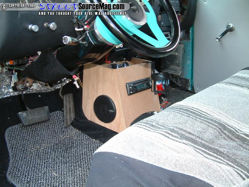 Moving into the interior you’ll find a custom-built center console to house the CD player along with much of the same with corner speaker pods on the floor for the mids and highs. The door panels would be rewrapped along with a custom steering wheel installed. With the rugged interior matching the vision Scooter had, he would then focus on the suspension.