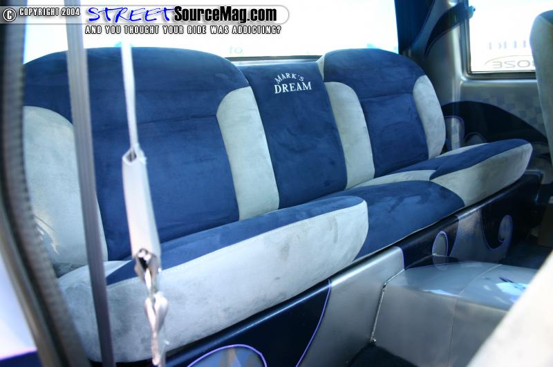 Marks Dream rolls on a set of 20” Boze Stixx wrapped in Michelin tires. Behind the wheels sits a set of 13” BAER brake’s up front, and 9” out back. The slotted and cross-drilled rotors finish off the look. Under the hood sits a fully polished and billet adorned Chevy 350 motor. The motor boasts electric fans, March billet water pump alternator and pulls, billet valve covers, and other dress ups. There is also a set of custom-built aluminum tubs.