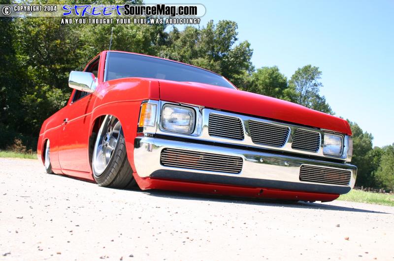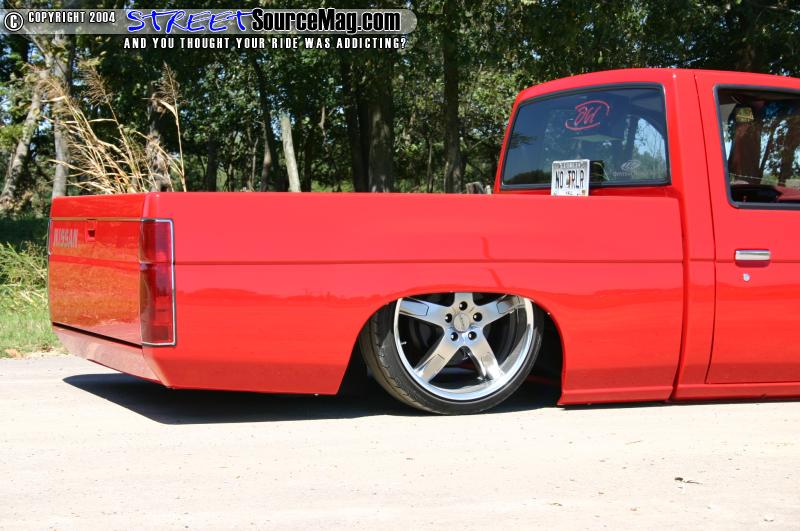 With the bodywork completed Chris’s Nissan was now ready to be sprayed with his paint of choice, Viper Red. After whatever didn’t need to be painted was removed Chris’s truck was treated with a smooth Viper Red base, and even smoother clear. Chris’s truck was then pulled out of the booth and put back together again. As you can see the exterior of this Nissan screams perfection.