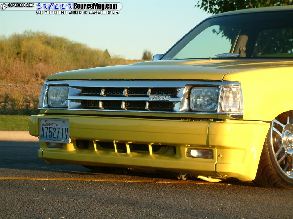The first thing needing done would be the new addition of a Mazda 4x4 hood, fenders and bed. Next Kenny would take the stock bumper and equip it with a frenched in plate. The gas filler door would then be shaved and moved behind tailgate.