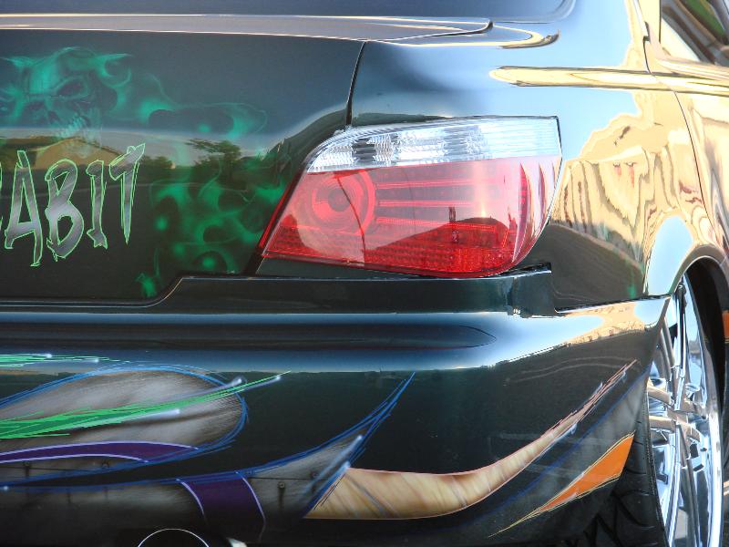 front end infiniti i30 headlight swap, bmw 5 series back end swap, motorized suicide hood and trunk, lambo front doors, and suicide lambo rear doors, shaved handles and moldings, custom made front bumper, custom cut billet grills. 35x40 street beat ragtop. redoing some shit.