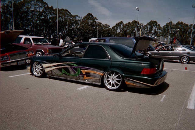 SHAVED HANDLES, SHAVED ,MOLDINGS, CUSTOM MERCEDES BENZ STYLE MIRRORS GRAFTED ON, CUSTOM MADE BILLET GRILLS, CUSTOM MADE FRONT AND BACK EYELIDS, PAINTED JUNIPER GREEN WITH HOUSE OF KOLOR GRAPHICS, AND TOPPED OF WITH 3 GALLONS OF CLEAR. 6/16/04 JUST DID THE LAMBORGHINI DOORS AND NO IT WAS NOT A BOLT ON KIT, KIT WAS MADE FROM SCRATCH FOR THIS CAR, AND DONE WITH HELP FROM JAIME AT PHAT RYDEZ, MODESTO, CA