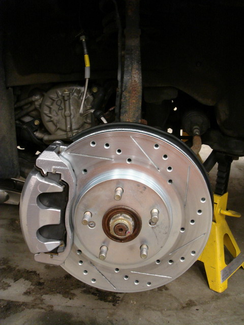 Brakes: Acura Legend two piston front calipers, Goodridge lines, KVR kevlar pads, slotted & drilled rotors. Suspension: Airlift air struts, 8 GC 3/8" valves, Viair 480C, two Viair 2.5gal tanks, seperator, Dakota Digital Odyssey gauge, BMW M5 power window switch cluster.