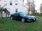 Bomber body kit from Extreme Dimensions, Snyper wing from ED, Lambo doors, Carbon fiber hood, Midnight black, Blue underbody neons, Carbon fiber tails