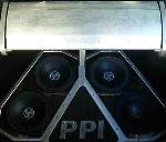 Custom Water-Jet cut billet aluminum and welded steel amp-rack. Custom PPI PCX-5800 in a PCX2400 Heatsink. Four PPI C series 10" subs. 2 PPI 3-way 6/4/1" component sets. Kenwood Double-Din Headunit.