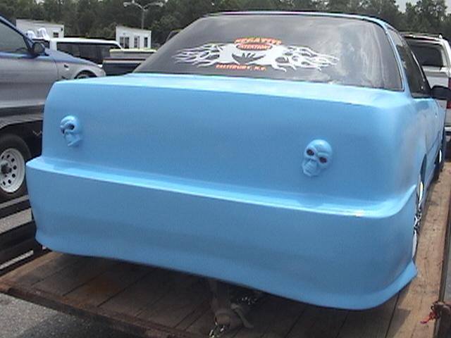 GROUND DESIGNS2000 BLACK WIDOW KIT,SHAVED TAILLIGHTS...finally added my new skull taillights to the car...i just got done adding a 96 civic blitz front bumer and shaved the headlights so check it out ohh yea i also welded the back doors shut so tell me what u think....IGHT I ALSO JUST WELDED THE TRUNK SHUT AND SHAVED THE TAX BOX OUT OF THE BACK BUMPER AND THE EXHAUST HOLES OUT OF THE BACK BUMPER SO TELL ME WHAT U THINK NOW