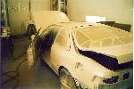 Black vinyl wrapped seats, headliner-pillars-door panel inserts have been done with charcoal grey suede, have to build custom system for trunk