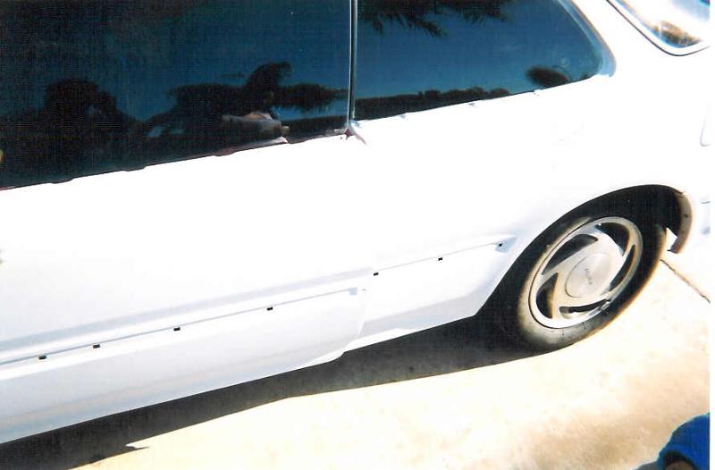 JDM 1 piece headlights, JDM moldings, shaved door handles,trunk key hole, wing holes, antennae, window squirter, emblem holes, just painted it( the brightest white I could find)