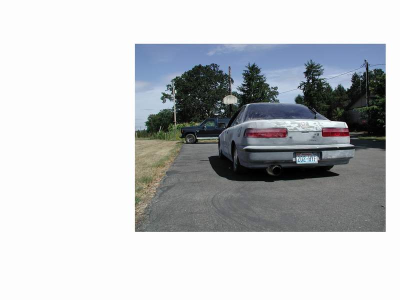 shaved side moldings, Shaved antenna, shaved window squiters, emblems, trunk key hole and door handles, carbon fiber hood and 1pc black housing projector headlights new custom blue paint job, R33 Skyline front, Urethane black widow sides and rear