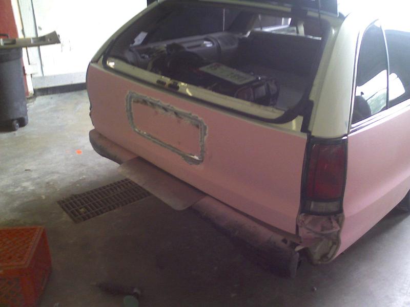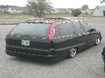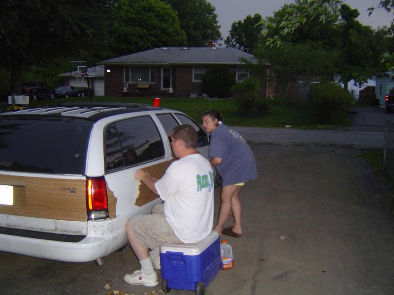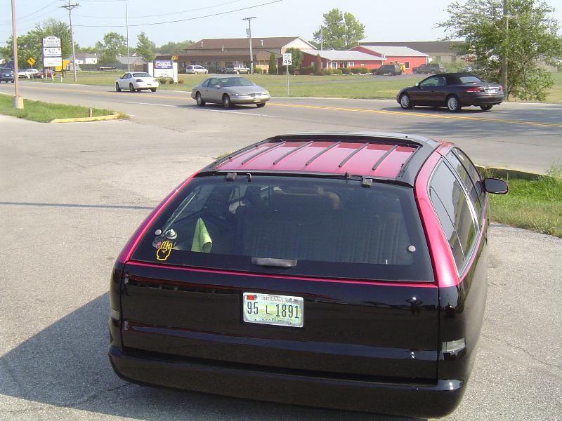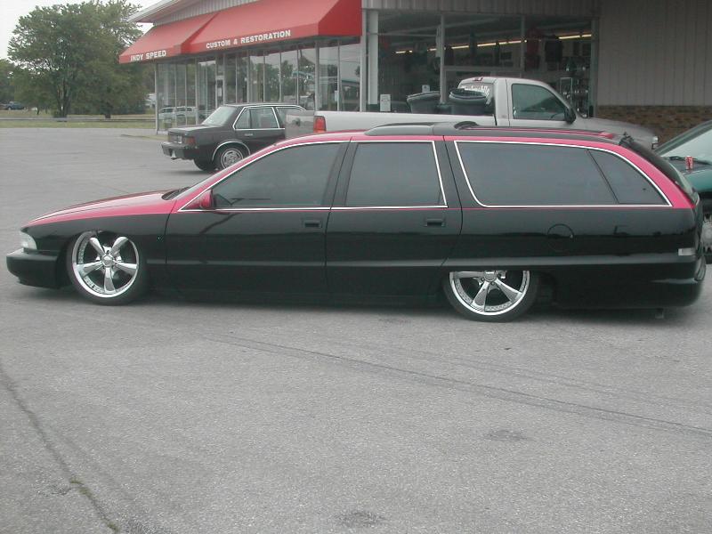 Shaved door locks, shaved antenna, shaved tail lights, molded roll pan, Removed all molding for wood grain