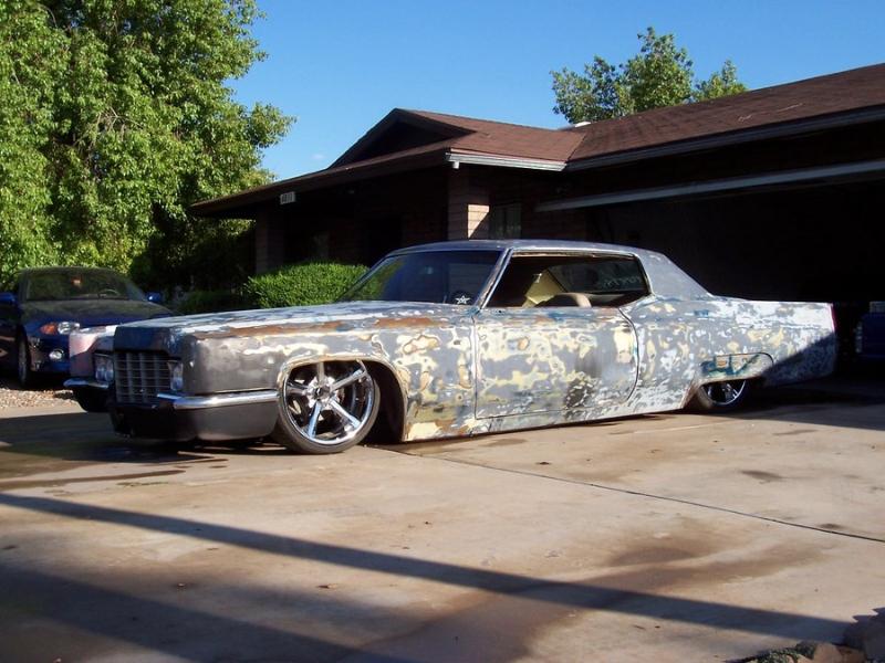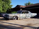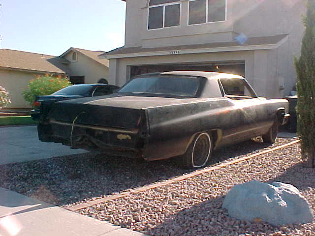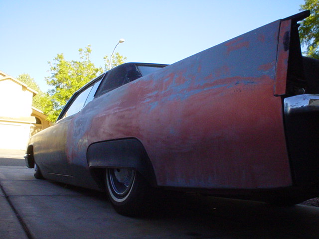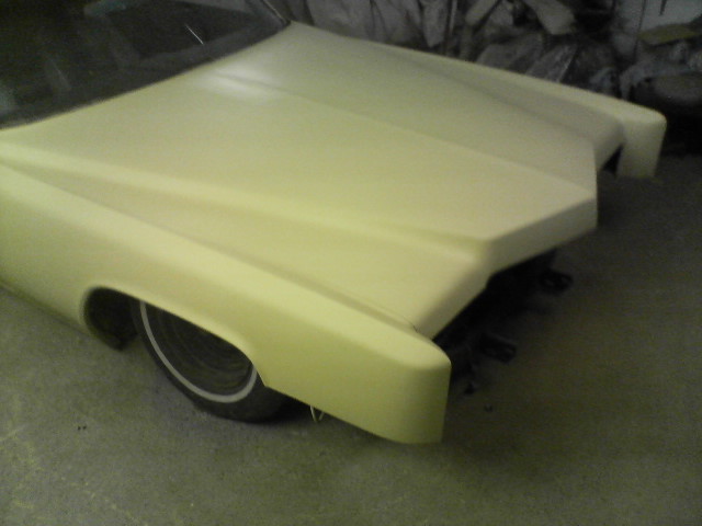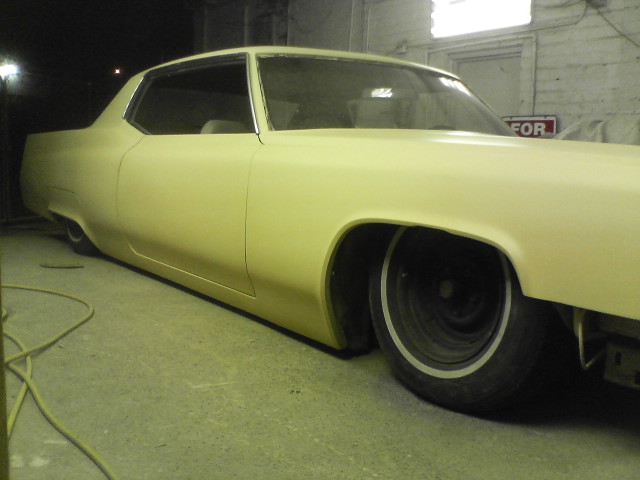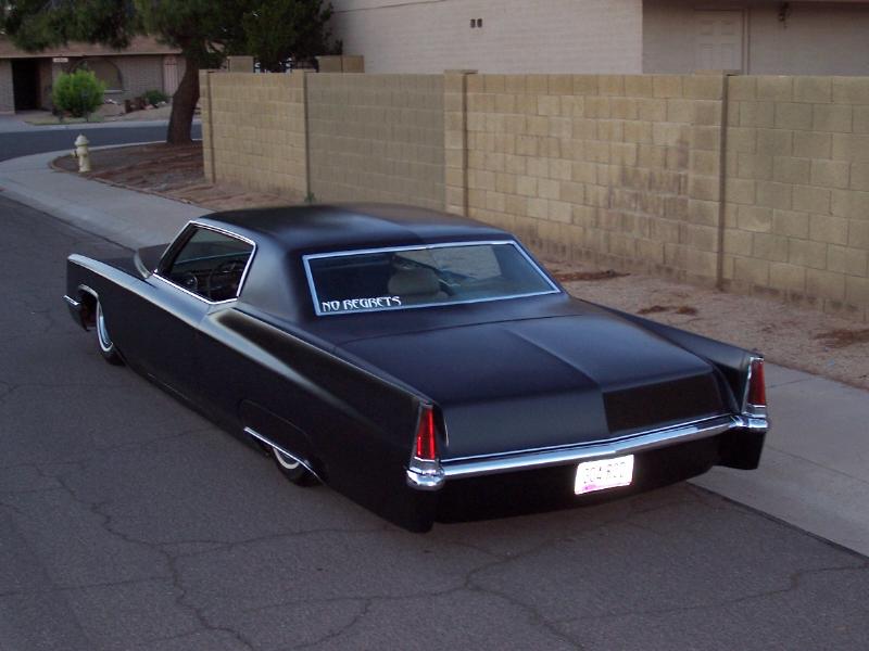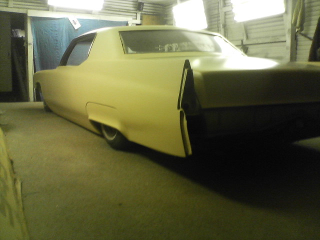 shaved handles, emblems, antenna, trunk lock, side mouldings, cornerlights, fenders molded to rockers, 3 piece bumpers molded together, blacked out on bottom, semi gloss black