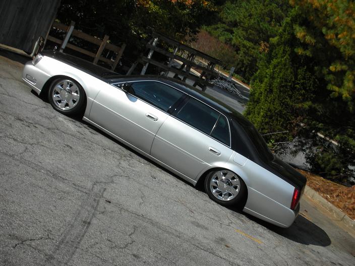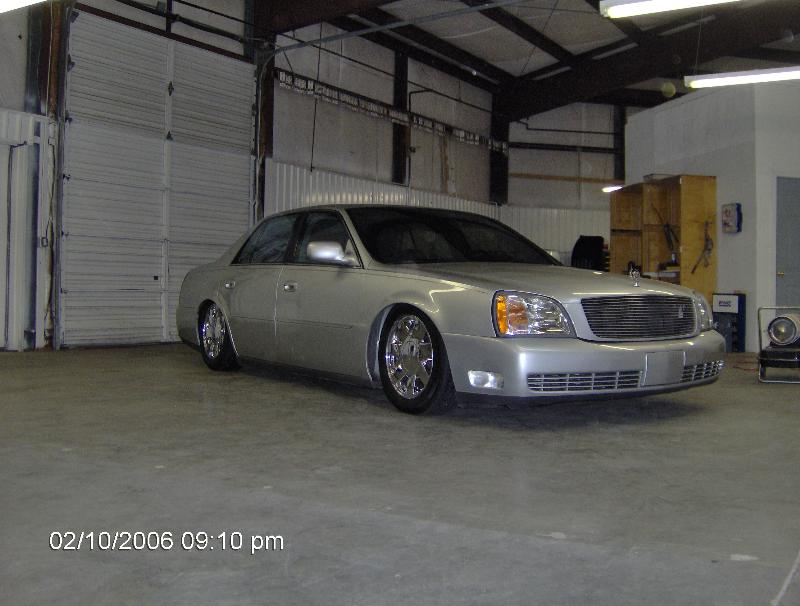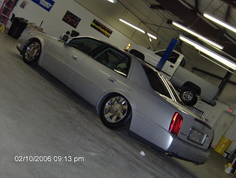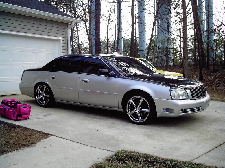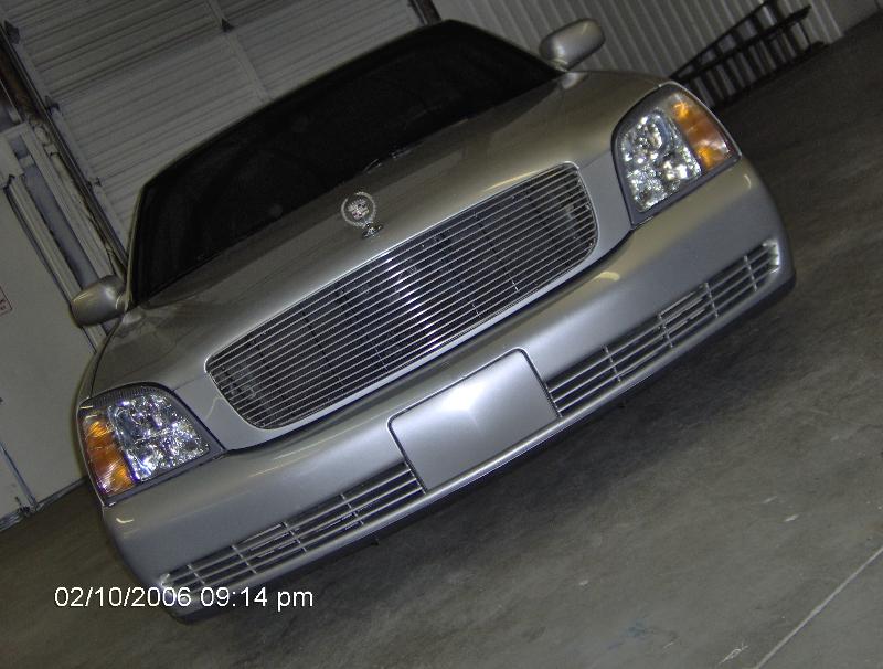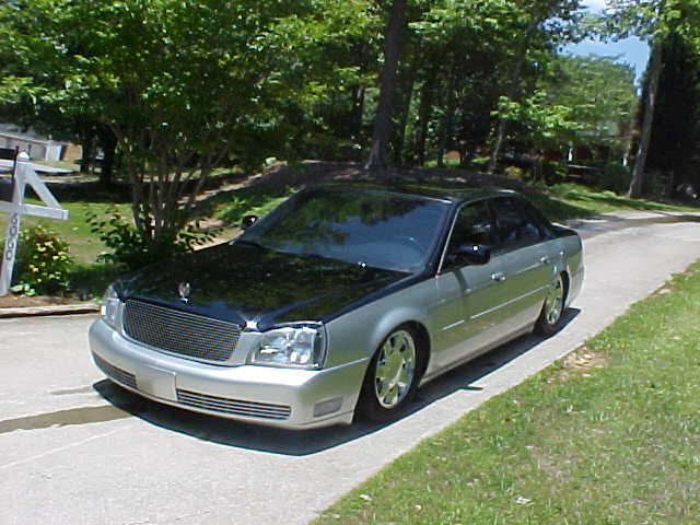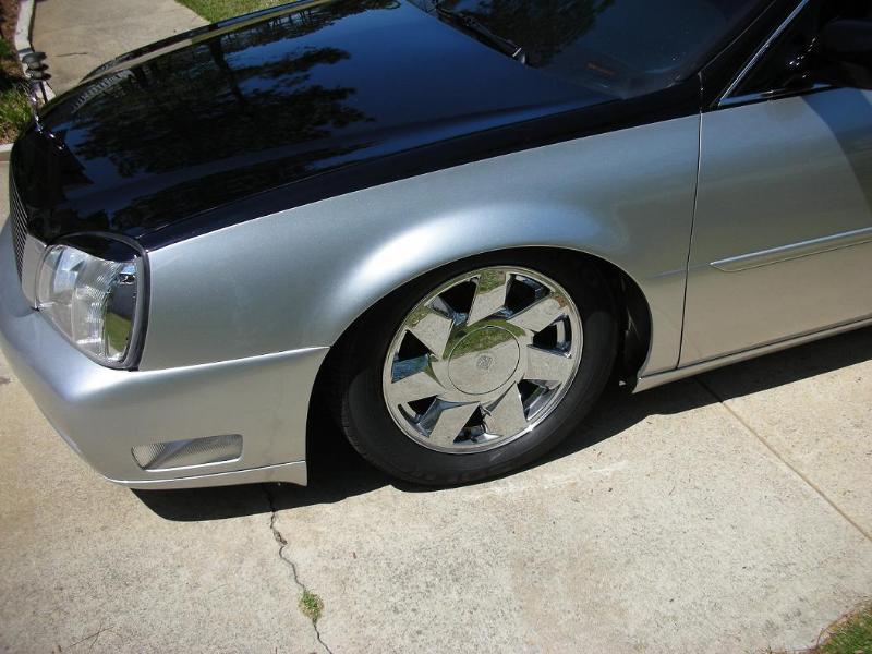 All the body work done and all the texturing at the bottom of the car was smoothed and painted thanks to Jerry's auto body (770-374-9332)and the whole car was repainted Galaxy silver and black 2 tone with billet grill new style caddy emblem on the hood, all the orange was pulled out of the headlights. tint
