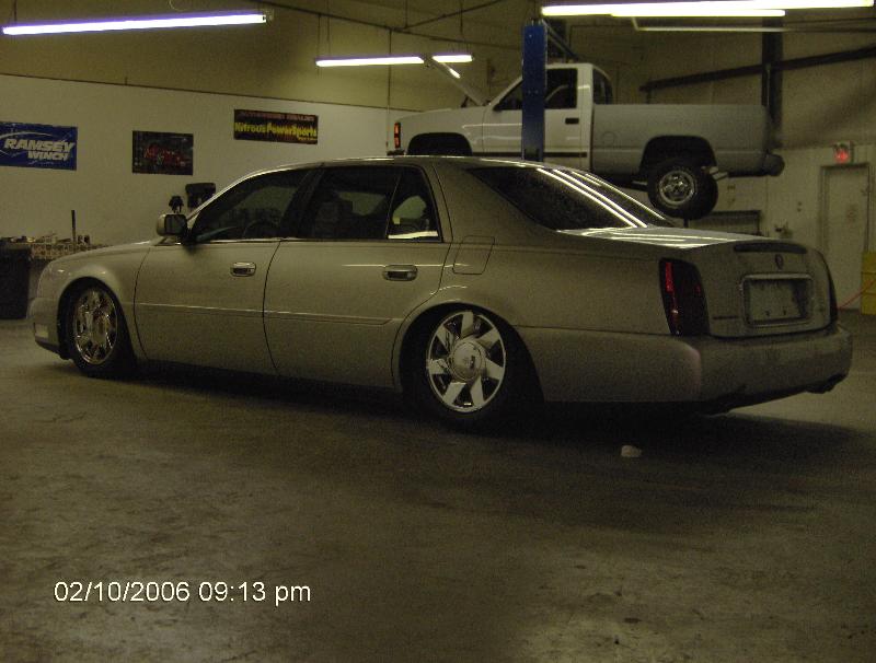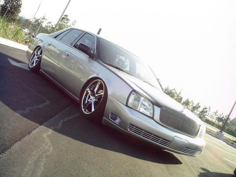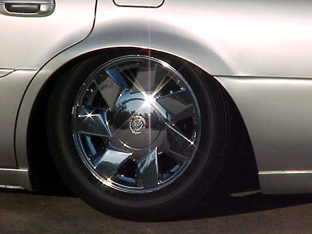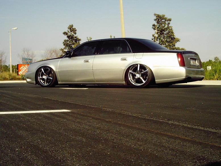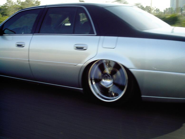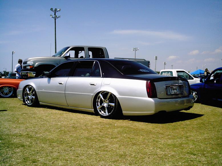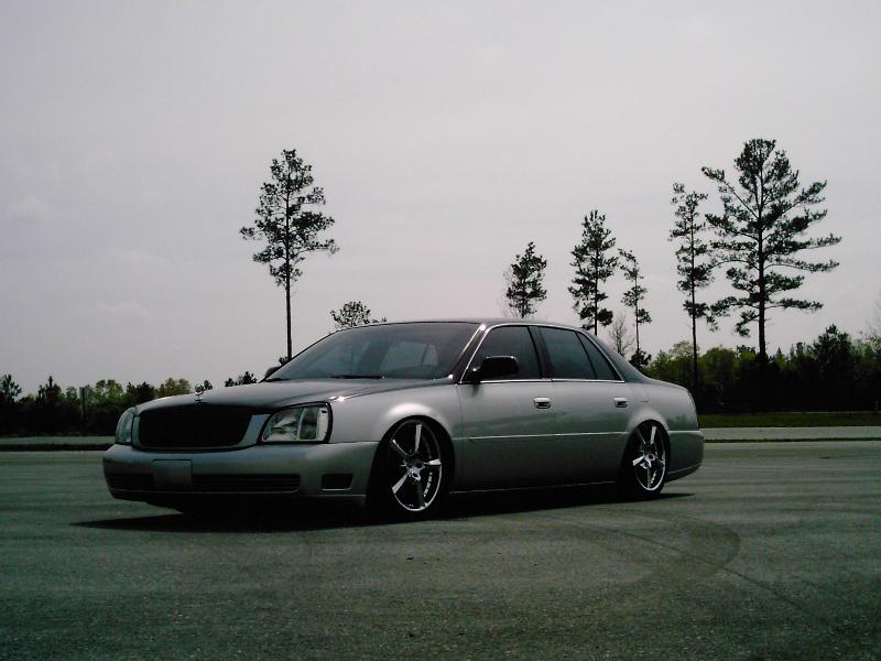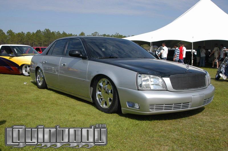 All the body work done and all the texturing at the bottom of the car was smoothed and painted thanks to Jerry's auto body (770-374-9332)and the whole car was repainted Galaxy silver and black 2 tone with billet grill new style caddy emblem on the hood, all the orange was pulled out of the headlights. tint