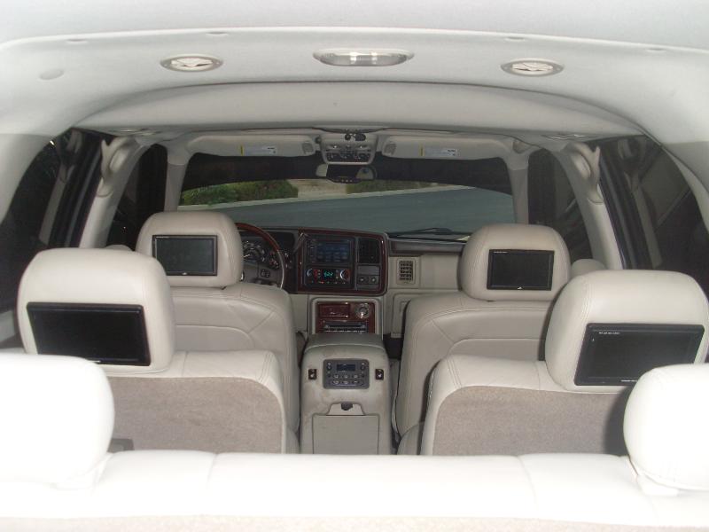 TV's in all headrests dvd player PSP hookup factory bose stereo and indash touchscreen with 8" bose subwoofer