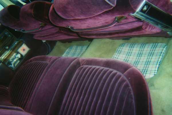 Burgundy velour seats, tan carpet, burberry dash, burberry floormats, burberry visors, burberry backdash and side panels