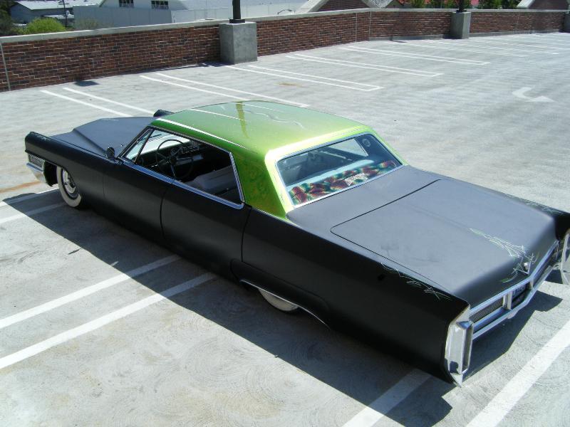 shaved handles&blinkers flat black bottom green top lots of pinstiping