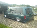 Fabbed front frame, wishbone 4-link out back, slam bags.